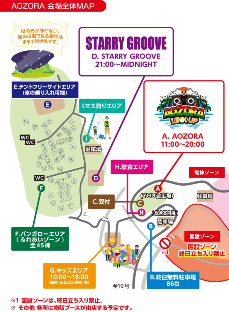 AOZORAは、今年からキャンプ場全体を使用しての開催となります。